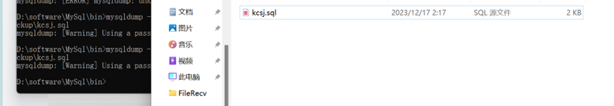 重启Mysql服务,下次在使用备份命令时,将命令更改为如下(加载配置文件):