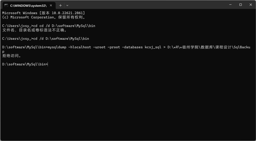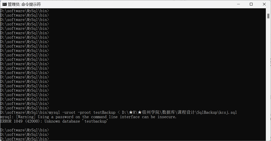 cd /d D:\software\MySql\bin