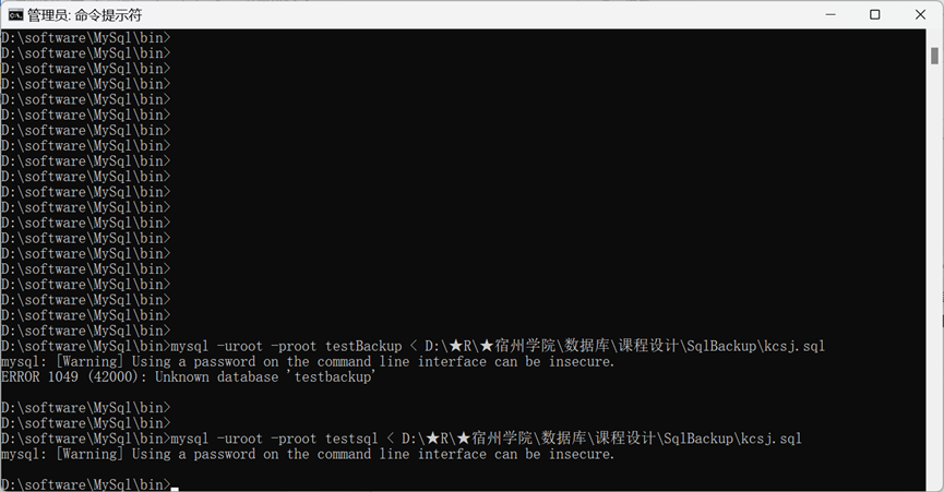 mysql --defaults-extra-file=my.ini ygbx2 < D:\SqlBackup\Mysql.sql