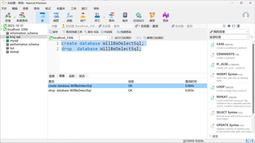 ②删除数据库