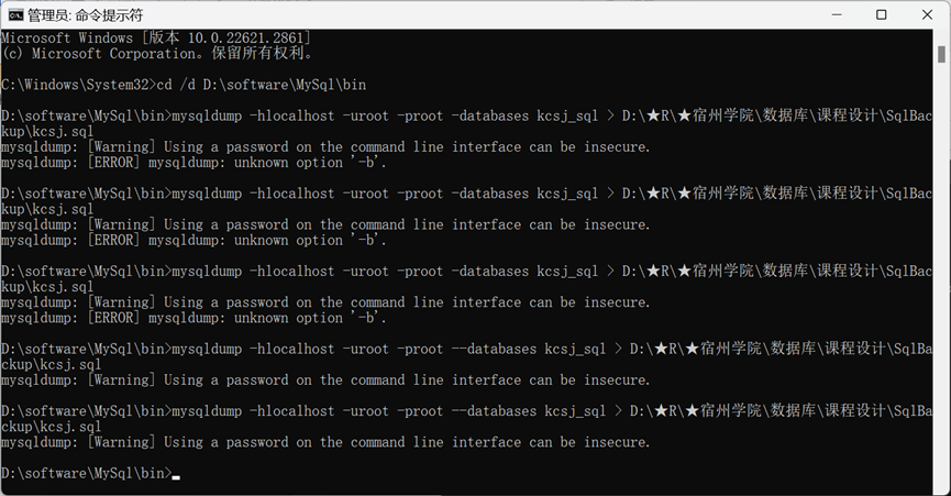 mysqldump: [Warning] Using a password on the command line interface can be insecure.